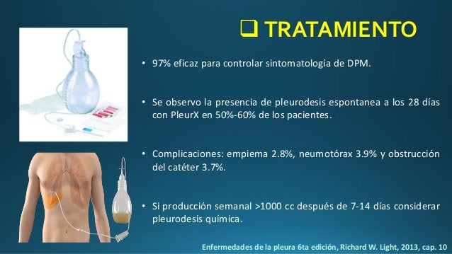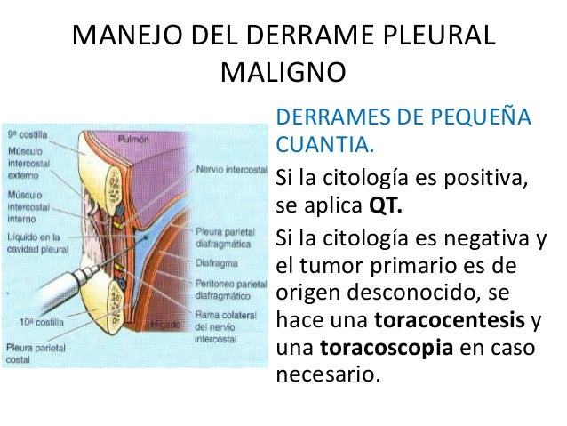SÍntomas del derrame pleural. El derrame pleural maligno es una patología frecuente en los pacientes con cáncer, y por tanto en los servicios de cuidados paliativos. Esta complicación se asocia tanto a los tumores pulmonares primarios como a los metastásicos, y suele plantear problemas relevantes a la hora de tomar decisiones terapéuticas. Teoma.Us has been visited by 100k+ users in the past month. Derrame pleural maligno symptoms, causes and cure español. Also try. Líquido que circunda los pulmones o derrame pleural maligno. Also try. Derrame pericárdico qué es, causas, diagnóstico y más. El derrame pleural (dp) es la acumulación patológica de líquido en el espacio pleural siendo manifestación frecuente de enfermedades sistémicas y torácicas. El derrame pleural maligno (dpm) es definido por la presencia de células neoplásicas en la efusión pleural y en algunas series supone el 50% del total de dp1. Vida, muerte y sufrimiento derrame pleural. El derrame pleural maligno es una complicación temida de muchas neoplasias, ya que, además de implicar un mal pronóstico, con frecuencia se acompaña de síntomas como tos, dolor torácico o disnea, que merman la calidad de vida del paciente. Derrame pleural medlineplus enciclopedia médica. Cómo aliviar los síntomas del derrame pleural. El tratamiento para los síntomas del derrame pleural debe ser estrictamente administrado por un médico, por lo que, en caso de presentar algunos de ellos, es importante asistir a un centro de salud cercano para recibir el debido diagnóstico y tratamiento.